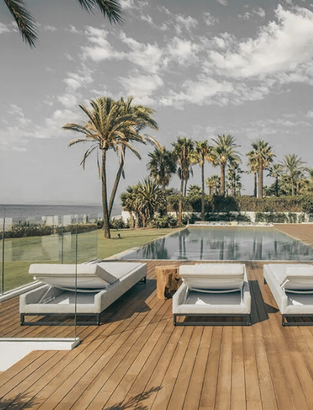 La Perla Blanca rests directly on the sands, facing the horizon with open arms. Sunlight moves gently through its glass walls. The sea arrives not as a view, but as a presence — constant, calming, close.